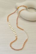 シェルや天然石、淡水パールなど、素材の美しさにこだわって仕立てたロングネックレスです。